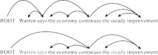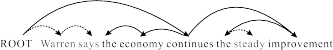 Therefore, we only need to consider the scores of arcs. For any compressed sentence, we could augment its dependency tree by adding a virtual arc for each deleted word . If the first word is deleted, we connect it to the root of the parse tree , as shown in Figure 3. In this way, we derive a full parse tree of the original sentence. This is a one-to-one mapping. We can reversely get the the compressed parse tree by removing all virtual arcs from the full parse tree. We restrict the score of all the virtual arcs to be zero, so that scores of the two parse trees are equivalent.